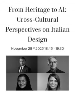 Among the series of public conversations, the session held on 28 November, “From Heritage to AI: Cross-Cultural Perspectives on Italian Design,” stood out for its relevance to contemporary debates on design education.